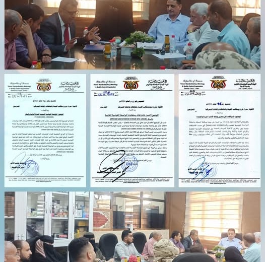 عُقد اليوم الثلاثاء الموافق 26 نوفمبر 2024م، بالعاصمة المؤقتة عدن اجتماع حضره المهندس حديد الماس رئيس الهيئة اليمنية للمواصفات والمقاييس وضبط الجودة والاستاذ محسن قحطان مدير عام جمرك المنطقة الحرة عدن والعميد جمال ديان مدير عام امن المنطقة الحرة، ونواب مدير عام جمرك المنطقة الحرة ومدير مكتب الهيئة بالحاويات وعدد كبير من الفنيين المختصين من المواصفات والجمارك كما حضر الاجتماع ممثلين عن القطاع الخاص عن المستوردين والتجار وكذا عن نقابة المخلصين الجمركيين، لمناقشة الاجراءات التي من شأنها حماية المستهلك وتطبيق المواصفات القياسية وتشجيع التجارة وتسهيل انسياب السلع والبضائع.