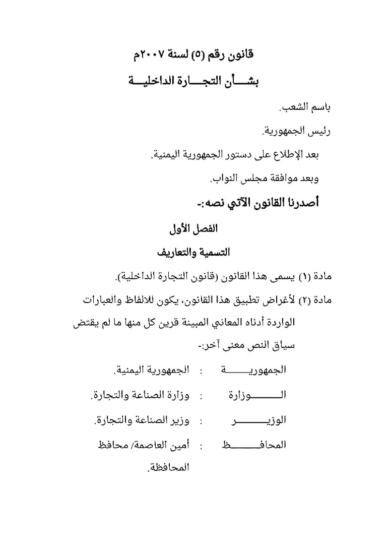 قانون رقم (5) لسنة 2007م بشأن التجارة الداخلية