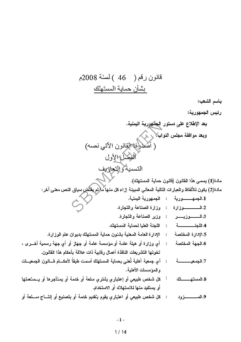 القانون رقم (46) لسنة 2008 م بشأن حماية المستهلك