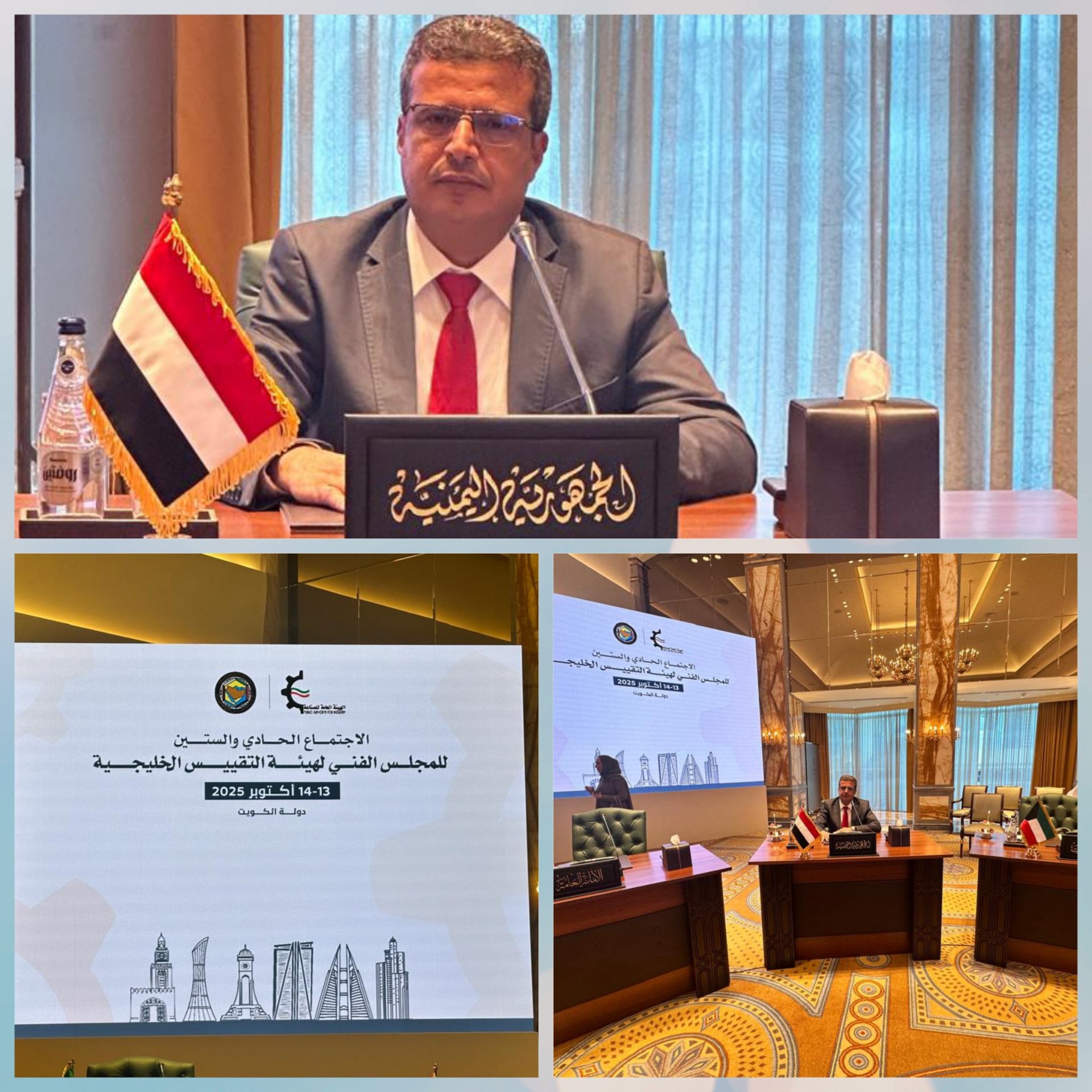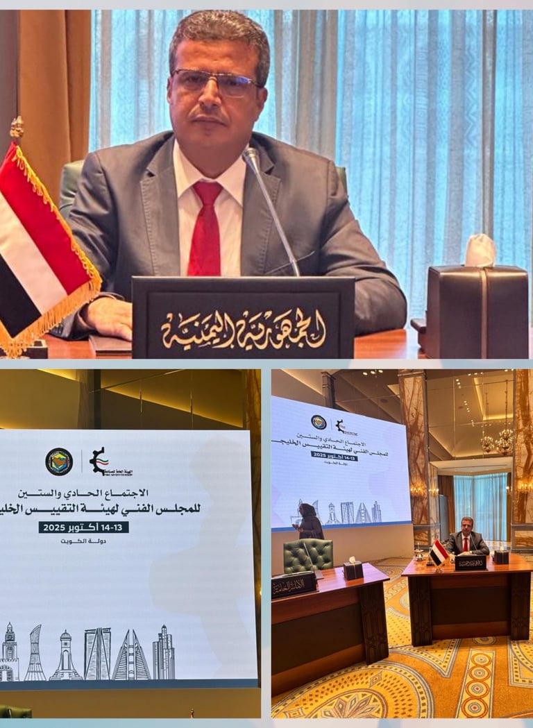 شاركت بلادنا ممثلة بالهيئة اليمنية للمواصفات والمقاييس وضبط الجودة أعمال الاجتماع الـ61 للمجلس الفني لهيئة التقييس لدول مجلس التعاون لدول الخليج العربية، وعقد الاجتماع على مدى يومين 13-14 أكتوبر 2025م، في دولة الكويت الشقيقة، بمشاركة أصحاب المعالي والسعادة رؤساء وممثلي هيئات وأجهزة التقييس بالدول الأعضاء.