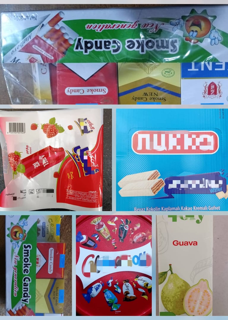 هيئة المواصفات والمقاييس ترفض وتتلف حلوى اطفال على شكل سجائر ومنتجات مخالفة في عدن وحضرموت والمهرة وتعز