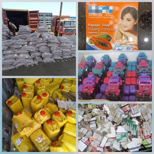 كما قامت الهيئة برفض كمية من العاب الاطفال مخالفة لمتطلبات المنظومة التشريعية الخاصة بلعب الاطفال، وصابون جسم بابايا مخالف للمواصفات وبعلامة تجارية مقلدة ومزورة وذلك يعد غش وخداع للمستهلك، ورفض كمية من زيت النخيل المكرر لتضرر عبوات المنتج.